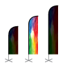 Le mât du drapeau est en 100% fibre très durable. Les beachflags imprimés sont disponibles en 3 tailles différentes: small, medium et large … à des prix très compétitifs !