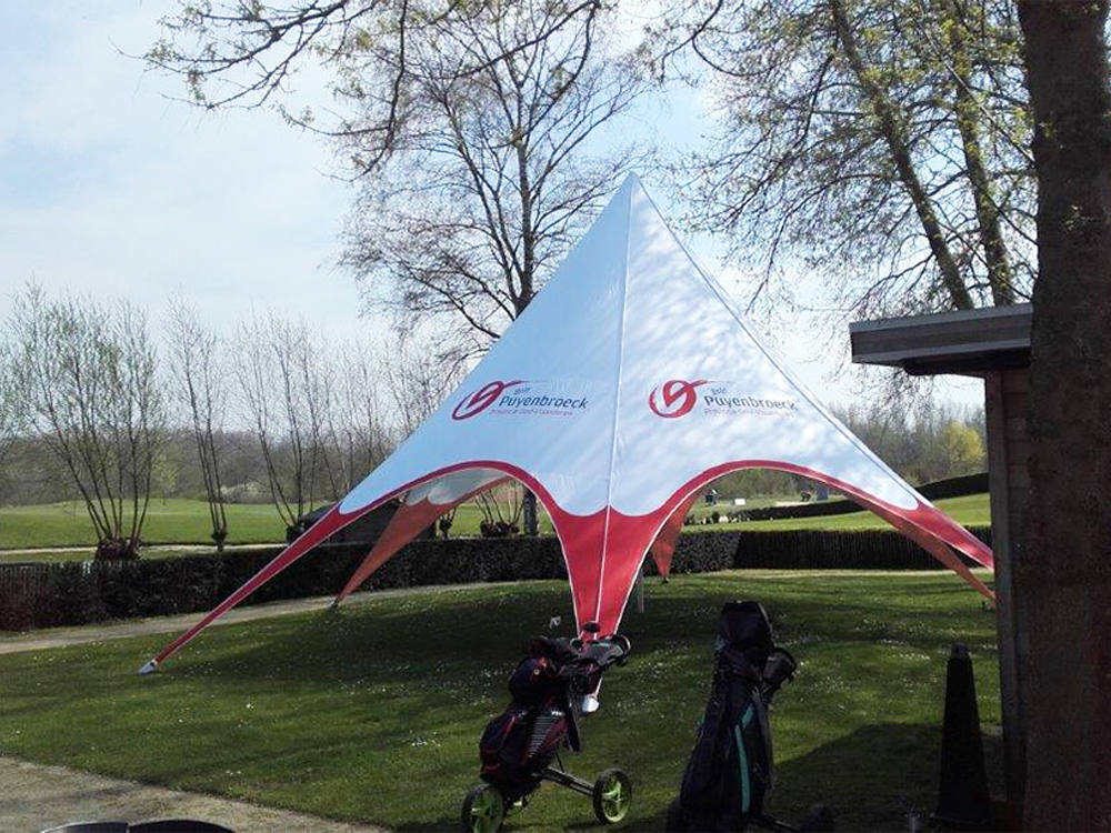 Nous imprimons des tentes pliantes, des tentes gonflables et des tentes étoiles.Vous avez également la possibilité d'imprimer des tapis et des housses pour des mange-debout ou des tables de buffet. Explorez également nos drapeaux de plage et nos arches gonflables. Contactez-nous pour un devis (sans engagement de votre part). Notre graphiste travaillera avec vous pour créer la conception parfaite !