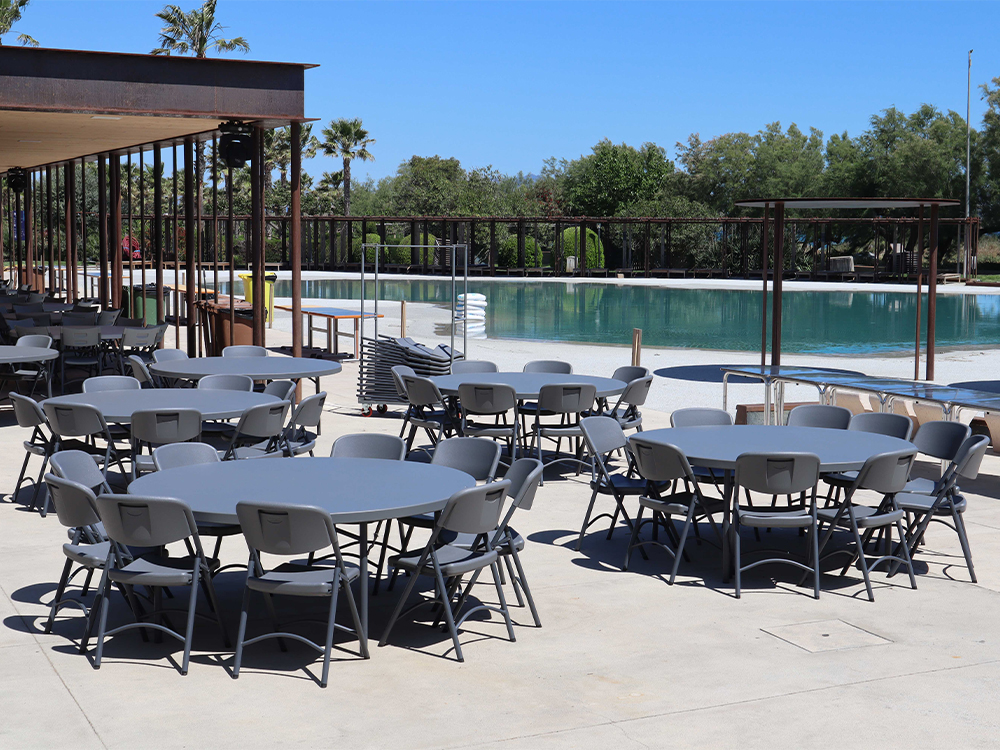 Petit plus : cette table s’accorde parfaitement avec nos chaises pliantes Pro grises.