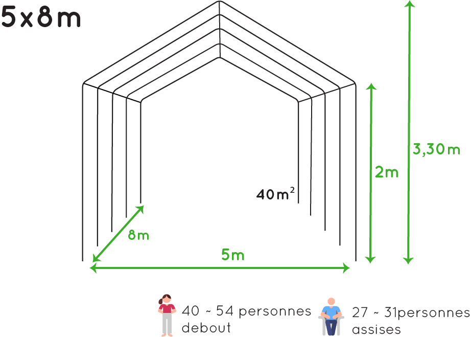 La solution parfaite pour un usage extérieur prolongé ou la location de tentes : cette tente de réception de 5x8 mètres offre une protection fiable en toutes conditions météorologiques.