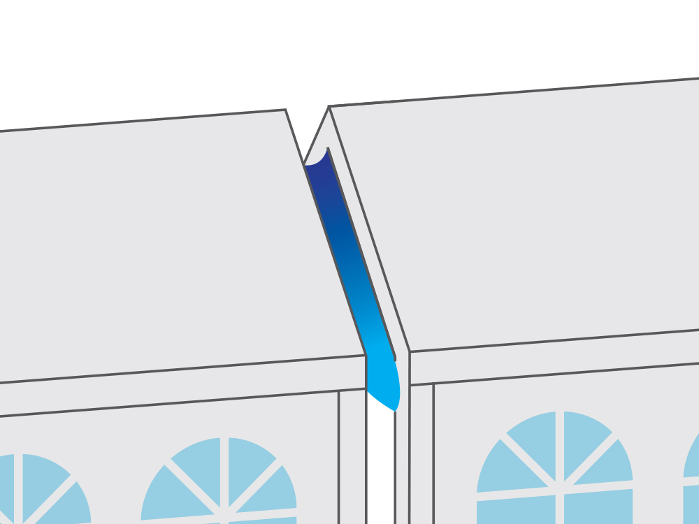 Un élément unique de cette tente est l’angle prononcé du toit à 120° : cela permet d’évacuer rapidement l’eau de pluie et d’éviter la formation de poches d’eau, fréquente avec un angle standard de 140°. La tente de réception Pro 50 HQ de 5x8 est donc un excellent choix pour un usage intensif en extérieur et pour le secteur de la location.